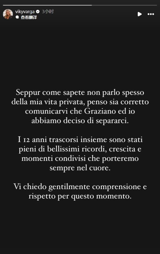 瓦尔加在社媒表示:“尽管你们都知道我不常谈自己的私生活,但我认为还是应该告诉大家,我和佩莱已经决定分手。”