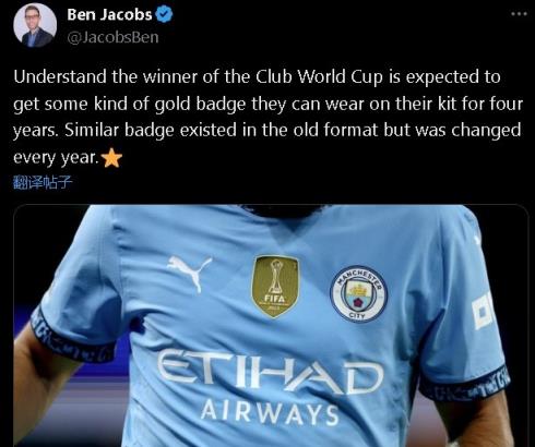谈及世俱杯新奖励制度,本-雅各布斯:"据了解,世俱杯冠军预计将获得一种金色徽章,可以在他们的球衣上佩戴四年。类似的徽章在旧赛制中就存在,但每年都会更换。⭐️"