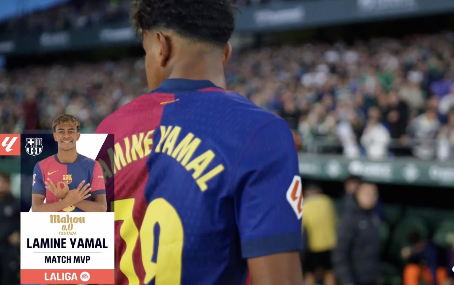 12月8日讯 本轮西甲比赛中,巴萨2-2遭贝蒂斯绝平。赛后,亚马尔当选了全场最佳球员。