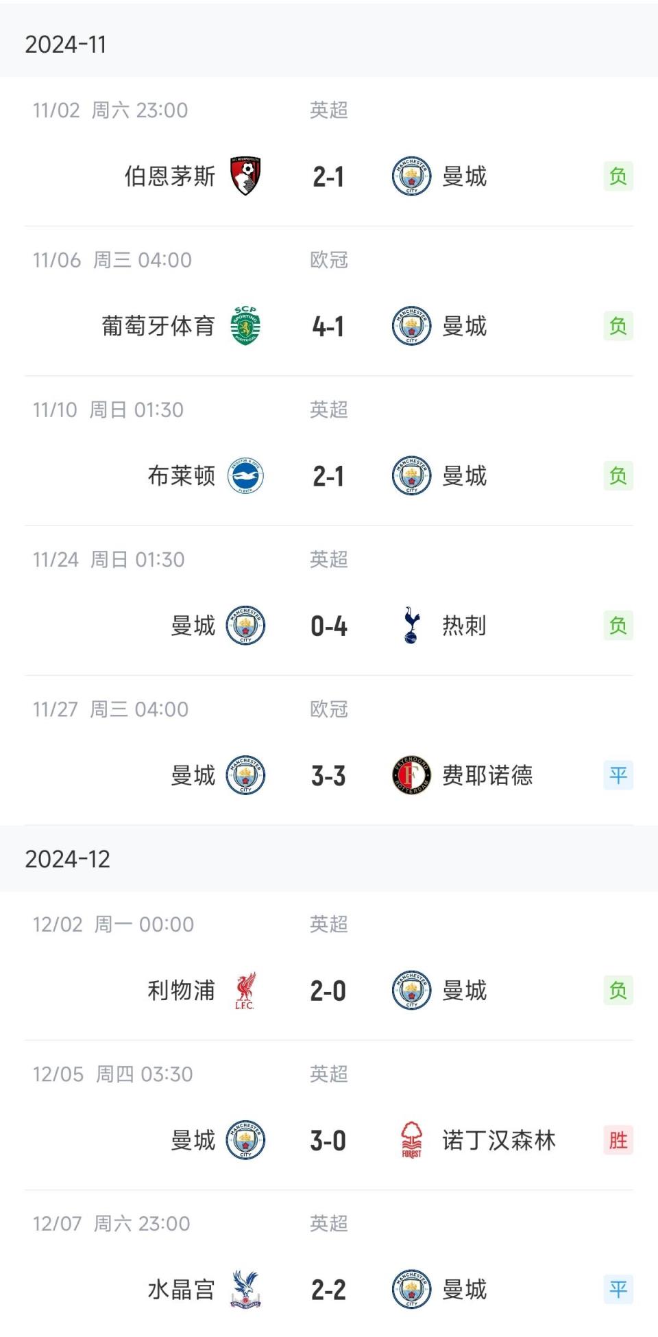 据统计,曼城英超近6轮仅1胜,下轮英超将迎来与曼联的“曼市德比”。