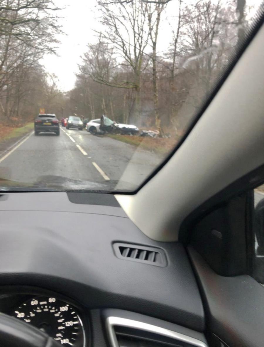 多个消息源曝光了车祸现场照片,英国地区车辆为右舵,照片可见车辆的右侧前半部分几乎全毁。