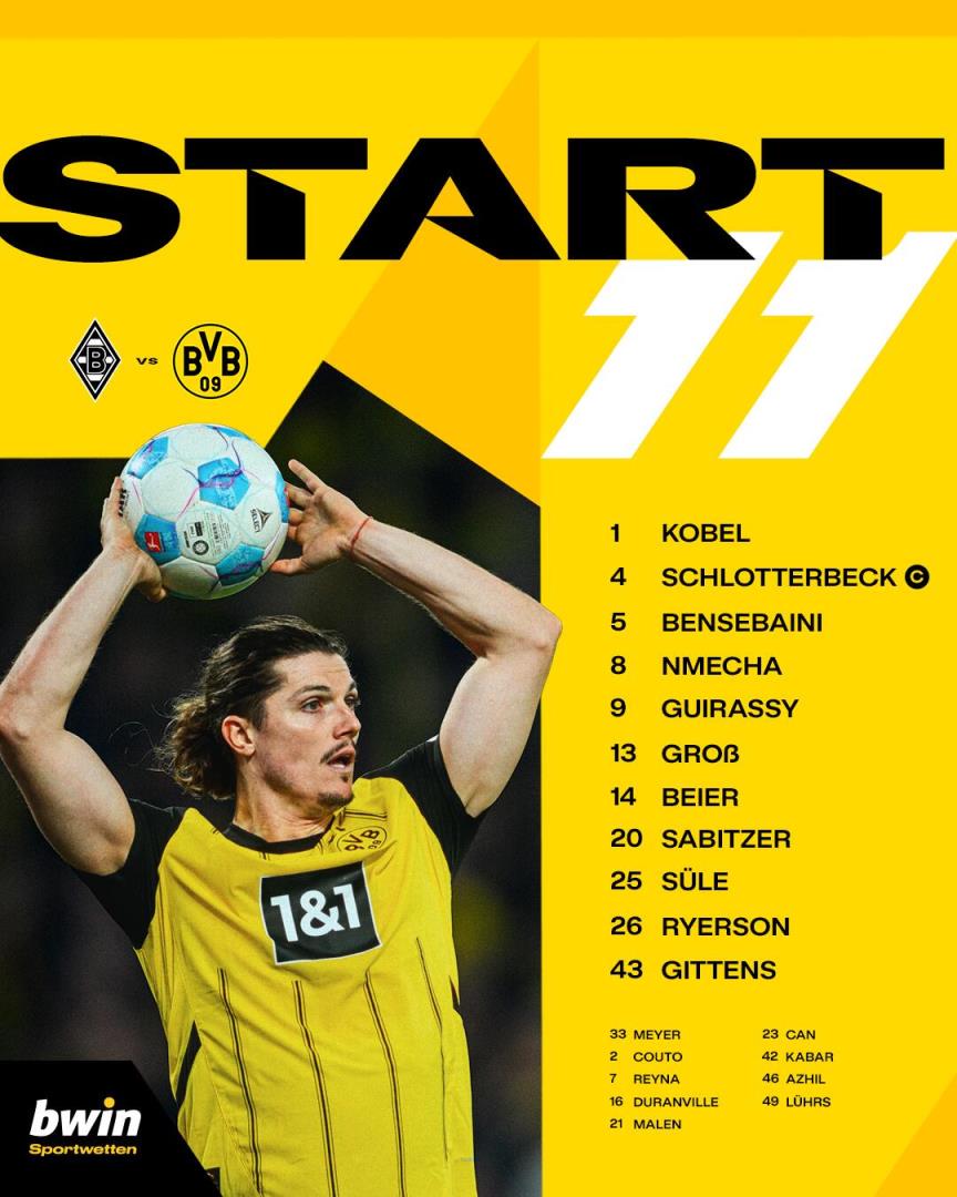 12月8日讯 德甲第13轮,多特客场对阵门兴。赛前,官方公布了本场的首发名单。