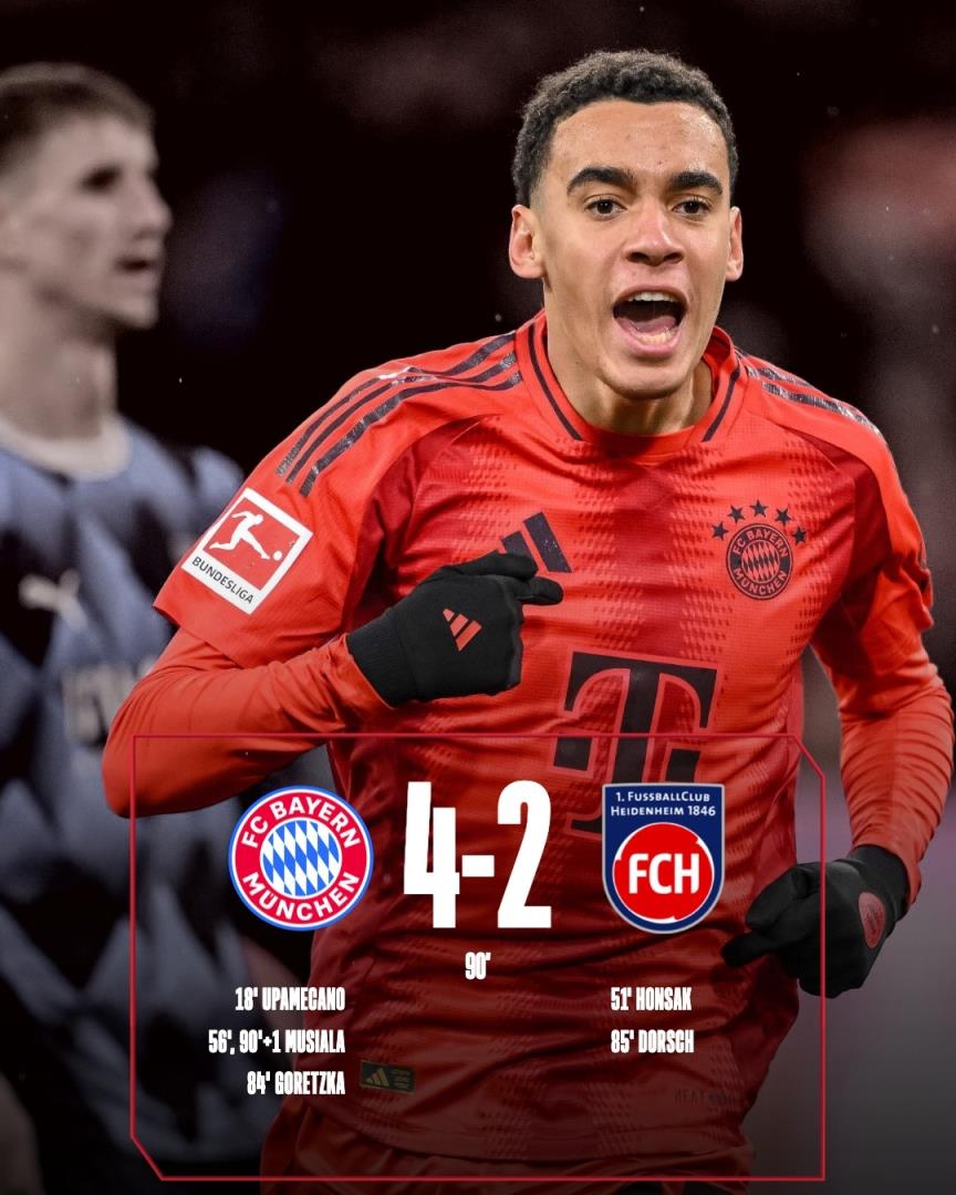 12月08日讯 今晚德甲拜仁4-2战胜海登海姆,值得一提的是,本场替补登场的小将穆西亚拉收获两粒进球,表现堪称完美。