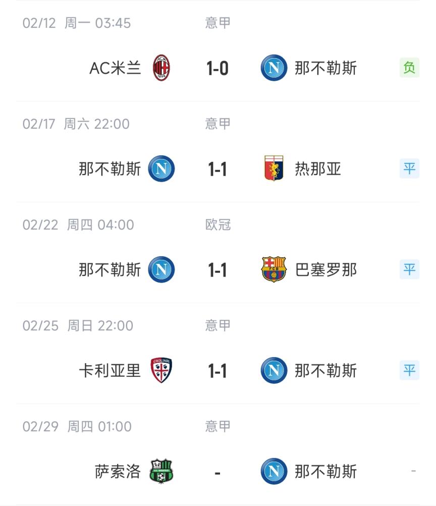 02月26日讯 意甲第26轮,卡利亚里1-1绝平那不勒斯。卫冕冠军那不勒斯本赛季表现继续低迷,目前26轮过后仅仅37分排在意甲第9,已经落后榜首的国米26分。