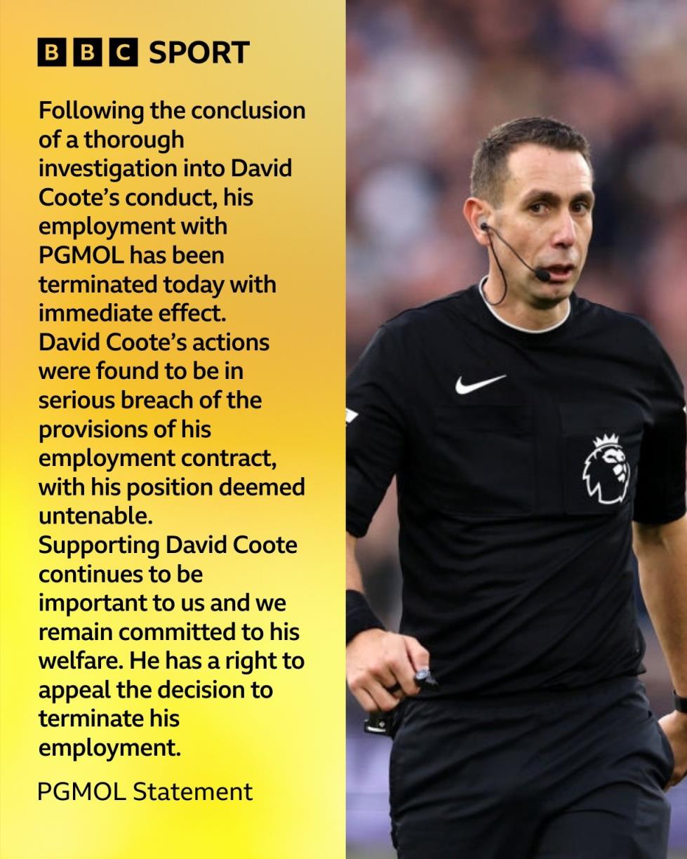 在库特的视频被曝出后,裁判公司就对他进行了停职调查,今天正式宣布将其解雇。
