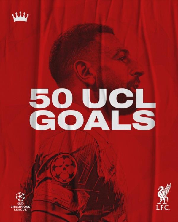 这粒进球是萨拉赫在欧冠中打进的第50粒进球(含欧冠附加赛),他是利物浦队史首位做到这一点的球员。