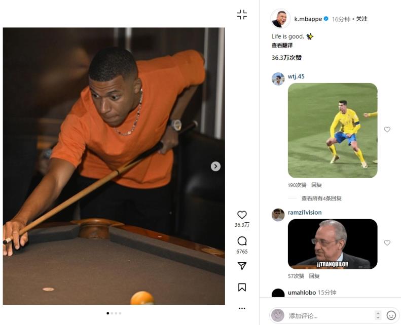 2月27日讯 今天,姆巴佩更新了社交媒体,他晒出了自己最近的生活日常,并配文:生活真美好。