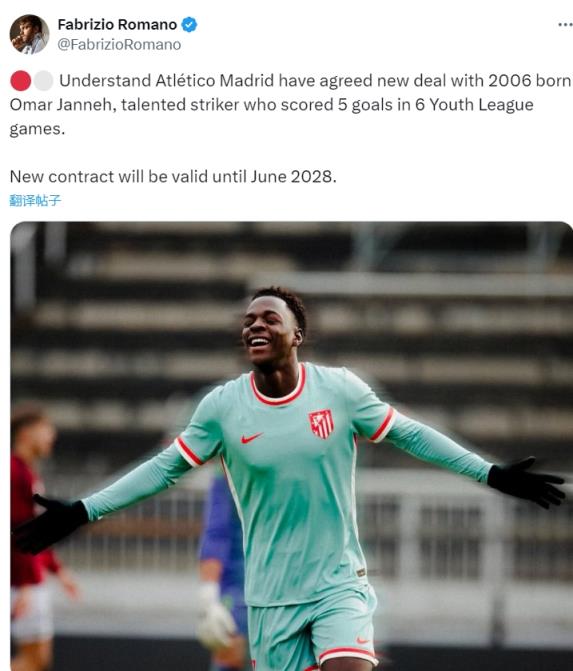 12月12日讯 据名记罗马诺报道,马竞已经和18岁小将詹尼达成协议,双方将续约至2028年6月。