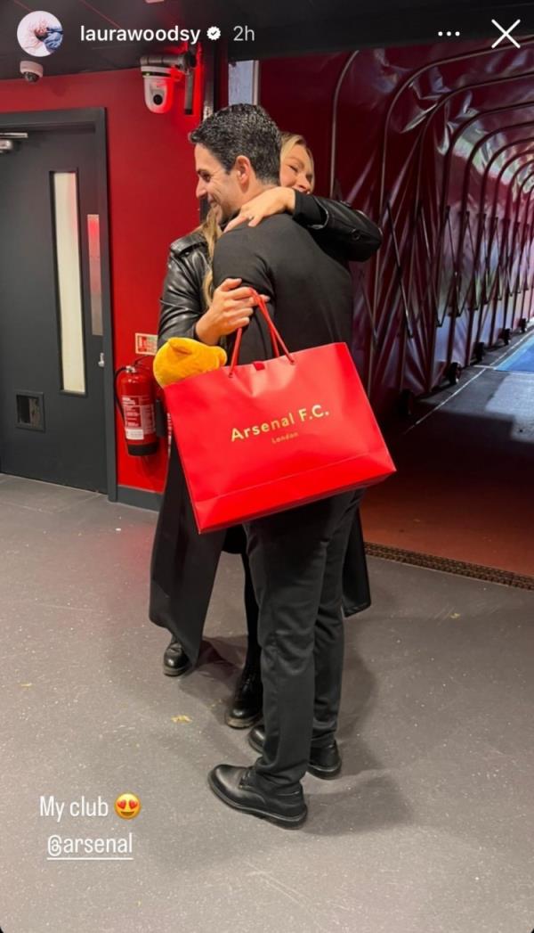 在阿森纳和摩纳哥的比赛后,阿尔特塔代表俱乐部和阿森纳球迷向劳拉-伍德送上一件阿森纳娃娃衣,劳拉-伍德本人就是阿森纳球迷,最近她宣布怀孕,她在收到礼物后非常感动,与阿尔特塔拥抱并表示感谢,随后在社交媒体晒出了照片和礼物,感谢了阿森纳俱乐部、TNT体育以及阿尔特塔的善意。