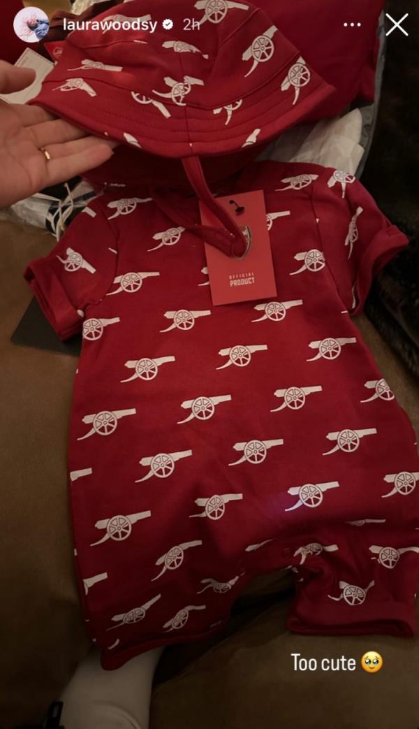 12月13日讯 TNT体育的女主持人劳拉-伍德今天在Instagram晒照,怀孕的她收到阿尔特塔代表阿森纳俱乐部和阿森纳球迷为她送上的礼物。