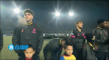 现场非常冷,小球童瑟瑟发抖,双方队员都穿着长袖。↓