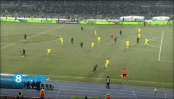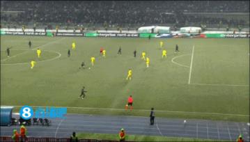 第11分钟,楚克乌梅卡禁区内倒地,主裁判没有表示。↓