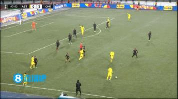 第35分钟,阿奇姆彭出球失误,阿斯塔纳禁区左侧肋部打门被约根森拿下。↓