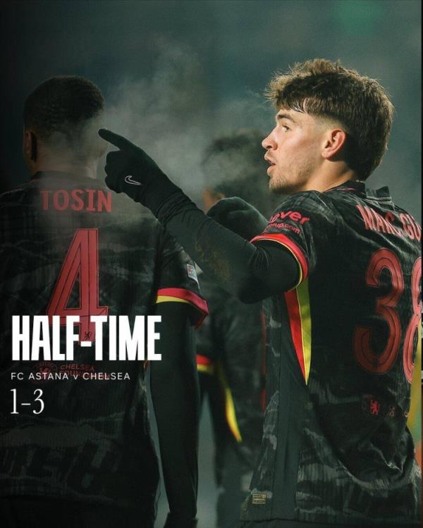 上半场比赛结束,切尔西3-1阿斯塔纳。