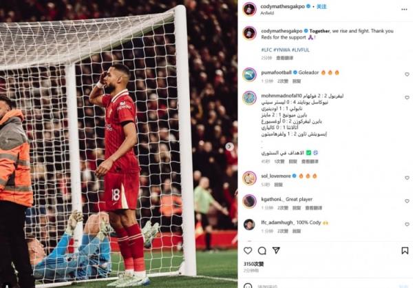 加克波也在赛后通过社媒晒出自己向球迷敬礼庆祝的照片,并配文:“团结在一起继续战斗!感谢红军球迷们的支持!”