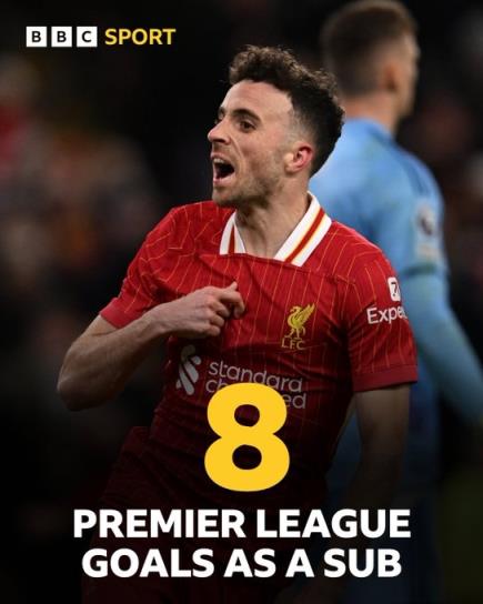 据统计,自2020年9月迎来英超首秀以来,若塔在替补登场的情况下打进了8球,是同期所有球员中最多的。