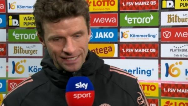 12月15日讯 本轮德甲比赛中,拜仁1-2不敌美因茨。赛后,穆勒接受了天空体育的采访,称赞了对手的表现。