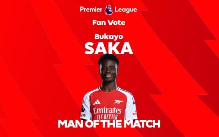 12月15日讯 在刚刚结束的英超第16轮比赛中,阿森纳0-0战平埃弗顿。赛后,萨卡当选了本场比赛的全场最佳球员。