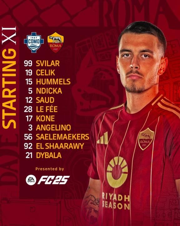 12月16日讯 北京时间今天凌晨1点,罗马将在意甲第16轮客场挑战科莫,球队现在公布了首发阵容。
