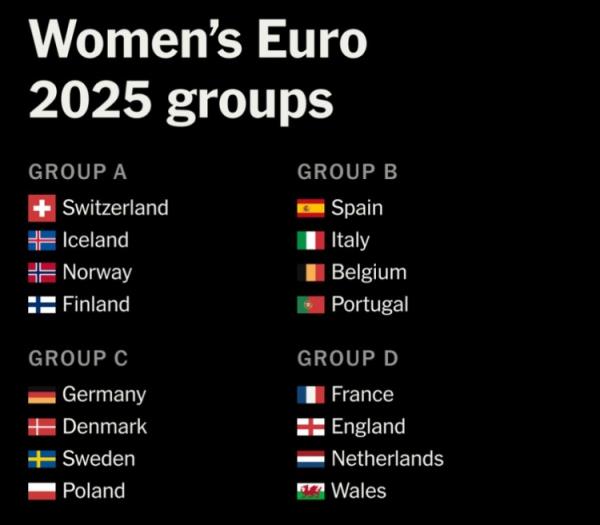 12月17日讯 2025女足欧洲杯小组赛抽签结果揭晓,世界杯冠军西班牙和意大利、葡萄牙及比利时同组,赛事卫冕冠军英格兰将会面对法国、荷兰及威尔士。