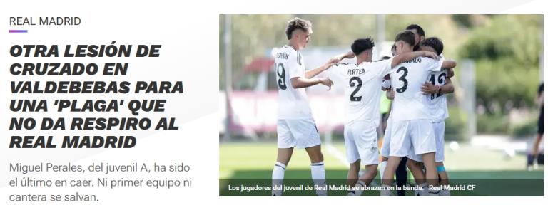 报道表示,皇马球员近年频繁遭遇十字韧带伤情,一线队中库尔图瓦、阿拉巴、米利唐(两次)、卡瓦哈尔都遭遇过这种伤情,其中卡瓦哈尔和米利唐预计下个赛季才能回归,这也影响了皇马球队的规划。