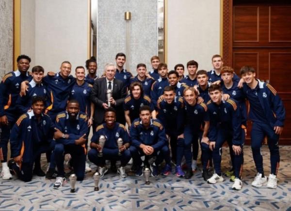 12月18日讯 FIFA年度颁奖,皇马多位人员获奖。在颁奖典礼结束后,皇马全队也拍摄了合照。