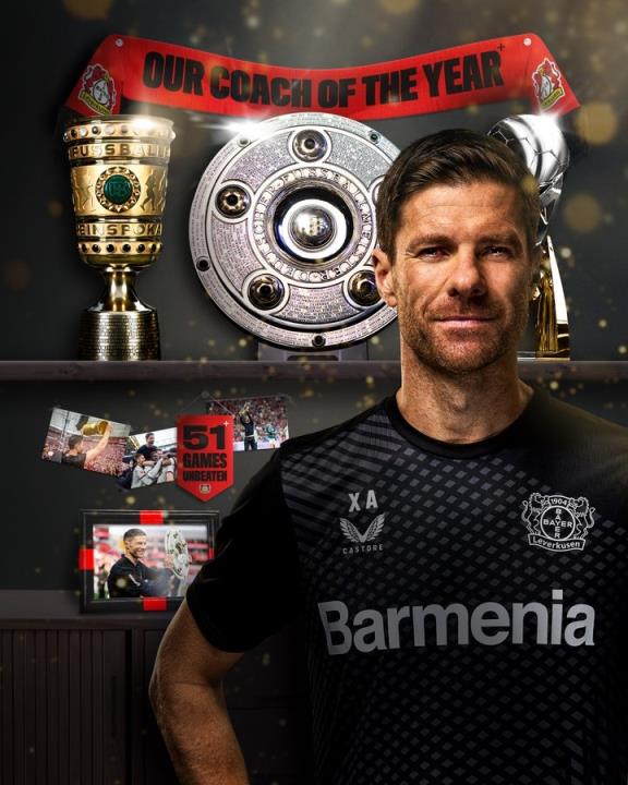 对此,勒沃库森官推写道:“最好的——哈维-阿隆索,我们为你感到骄傲,教练!