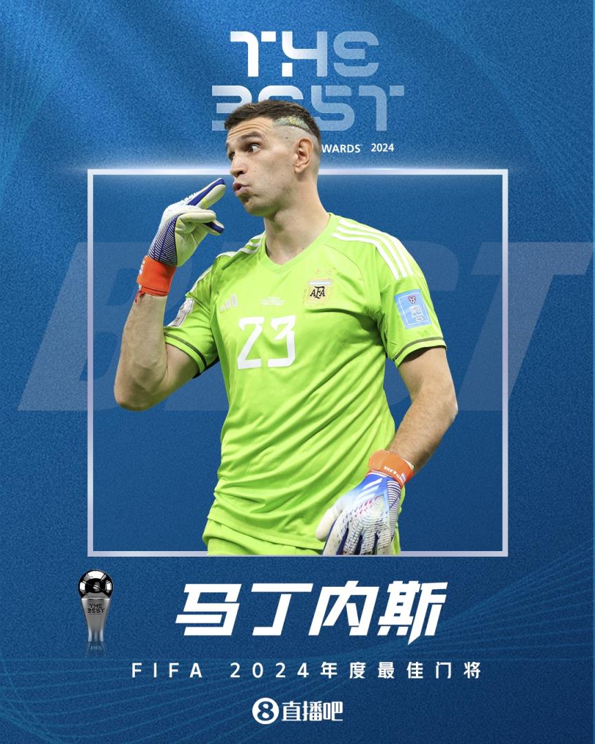 12月18日讯 FIFA官方公布了2024年度最佳门将得主,马丁内斯三年两获奖。