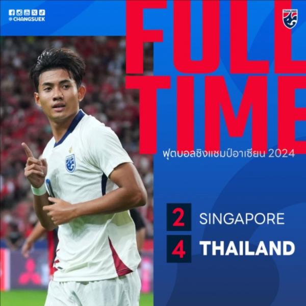 小组赛前三轮,泰国和新加坡均取得两连胜(各轮空一轮),两队本轮迎来正面对决。泰国队在0-2落后的情况下连追4球,4-2逆转对手收获三连胜。