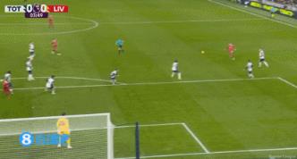 第17分钟,热刺后场比苏马出球失误,萨拉赫右路禁区连续摆脱后小角度抽射打在横梁上弹出。↓