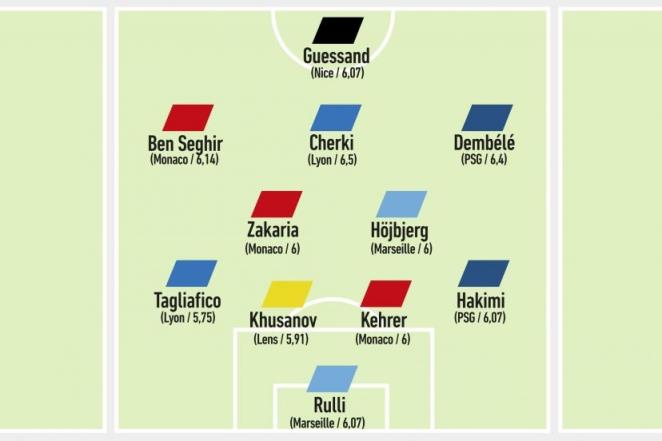 中场:扎卡利亚(摩纳哥)、霍伊比尔(马赛)、本-萨吉尔(摩纳哥)、切尔基(里昂)、登贝莱(巴黎圣日耳曼)