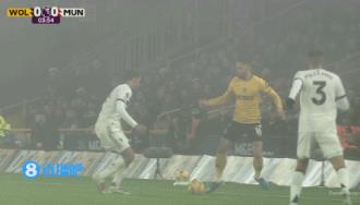 12月27日讯 曼联vs狼队第18分钟,库尼亚连续过人,B费犯规染黄!