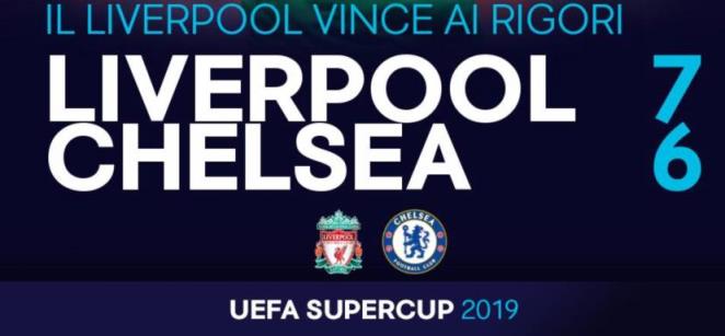 7、2019年欧洲超级杯:利物浦2-2切尔西,点球大战5-4夺冠,阿德里安扑点