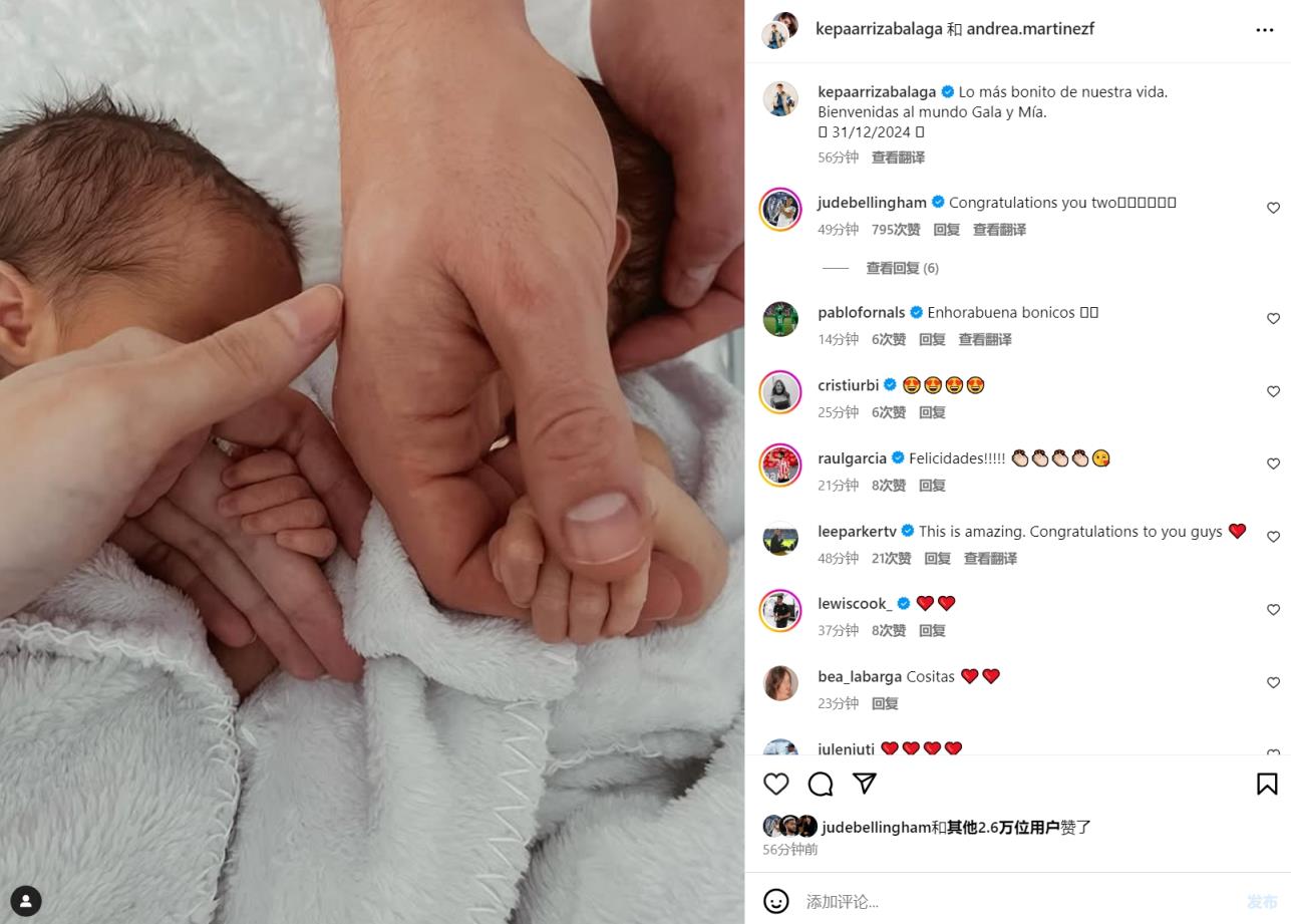 凯帕表示道:我们生命中最美好的事情,欢迎Gala和Mia来到世界。