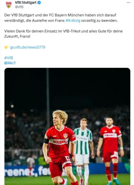 1月3日讯 据德国天空体育记者Florian Plettenberg报道,拜仁和斯图加特已经同意提前结束克雷齐希的租期。