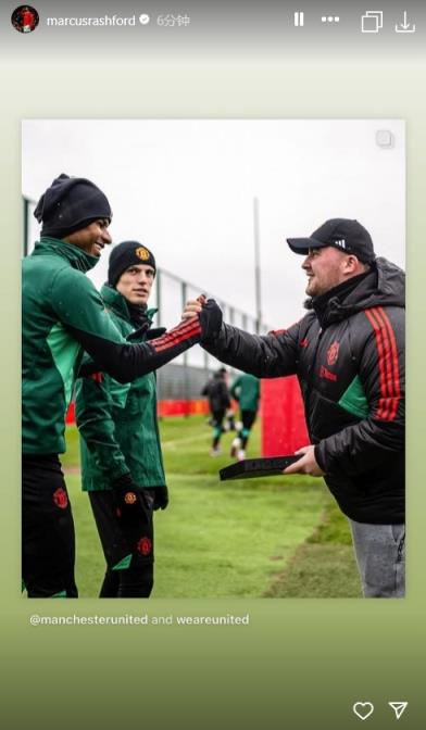 几个小时之后,拉什福德更新INS动态,他转发了曼联的一条包含自己照片的动态,在拉什福德转发的这张照片中,球员笑容满面与曼联球迷、英国飞镖运动员卢克-利特勒进行交谈,出镜的还包括加纳乔。