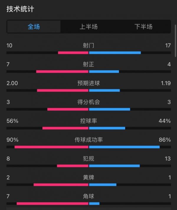 控球率:56%-44%