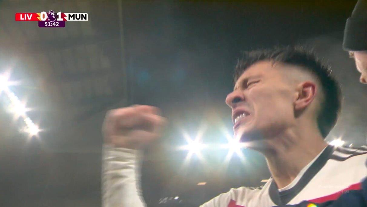 1月6日讯 英超第20轮双红会,利物浦对阵曼联。比赛第52分钟,阿诺德出球被断,B费助攻利桑德罗破门,曼联1-0领先利物浦。