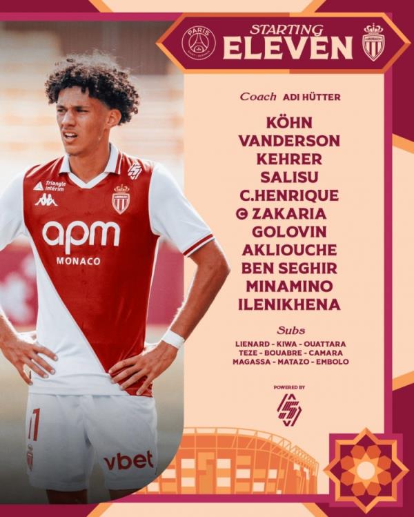 摩纳哥首发:16-库恩;12-恩里克、22-萨利苏、5-科雷尔、2-万德松;10-戈洛文、6-扎卡里亚、7-本-塞吉尔、18-南野拓实、11-阿克利乌舍;21-伊列尼赫纳