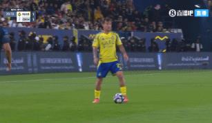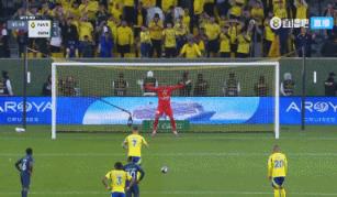 1月10日讯 沙特联利雅得胜利vs阿科多,第40分钟,马内造点,C罗点射打进!此时比分变为胜利2-1阿科多!