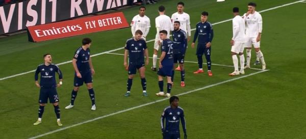 第59分钟,萨利巴紧抱霍伊伦,霍伊伦随后背身肘击萨利巴,萨利巴嘴角流血,裁判仍然没有吹罚犯规。↓