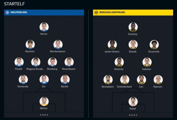 1月15日讯 北京时间今日1:30,德甲第17轮,荷尔斯泰因基尔主场对阵多特蒙德,此役双方首发已经公布。