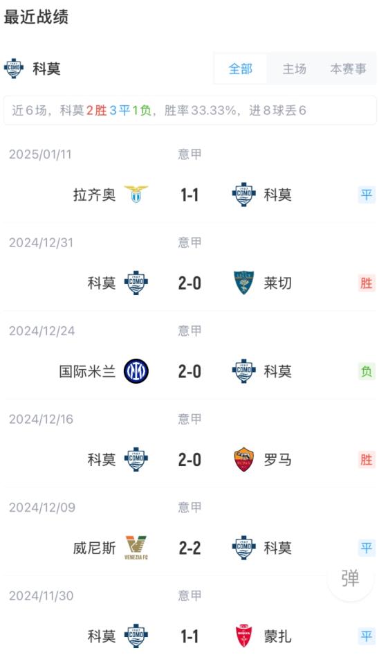 科莫首发:30-让-布特兹、5-戈尔达尼加、13-多塞纳、2-肯普夫、77-范德布雷普特、26-恩格哈特、33-达-库尼亚、16-阿利乌-法德拉、7-斯特雷费扎、10-库特罗内、38-阿萨内-迪奥