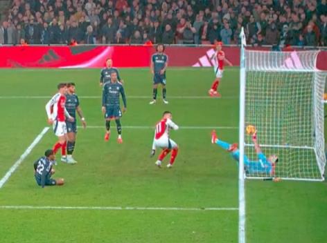 1月19日讯 英超第22轮,阿森纳vs维拉。比赛第35分钟,马丁内利包抄打门,球已完全过了门线,才被大马丁扑出!阿森纳1-0领先!