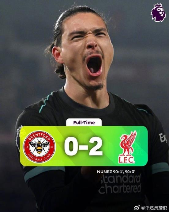 1月19日讯 英超第22轮,利物浦2-0布伦特福德,7分优势领跑。