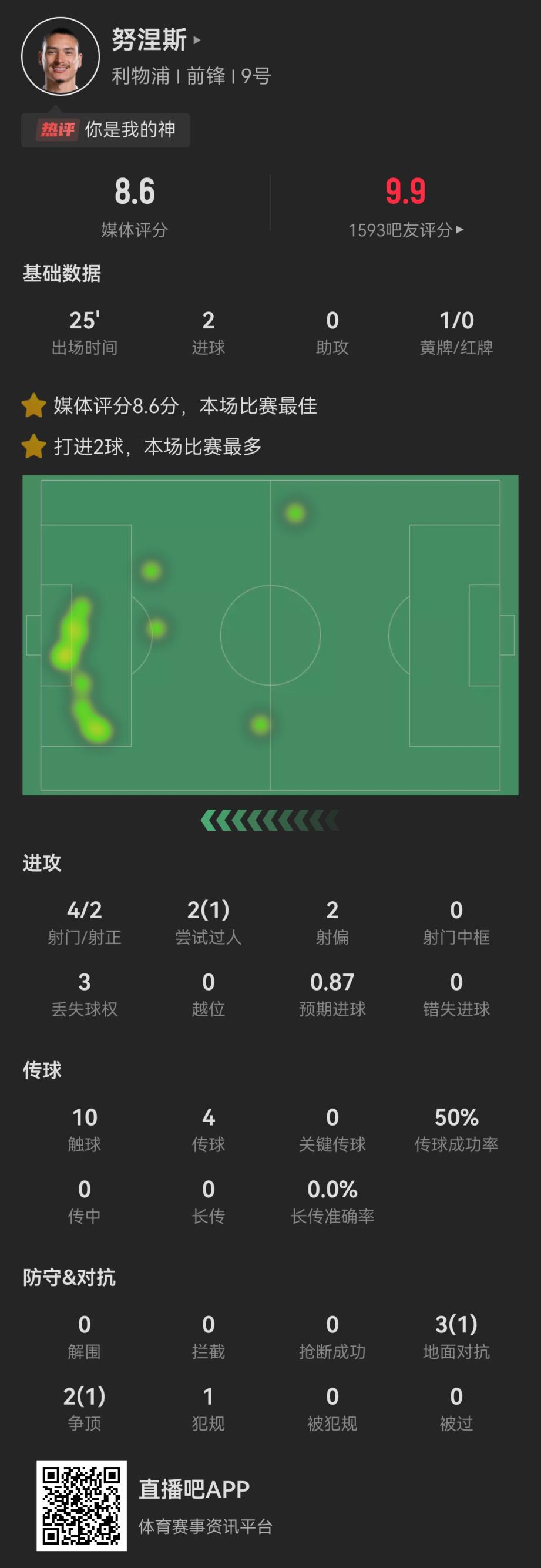 但在补时的2分钟内,努涅斯连入两球完成救赎