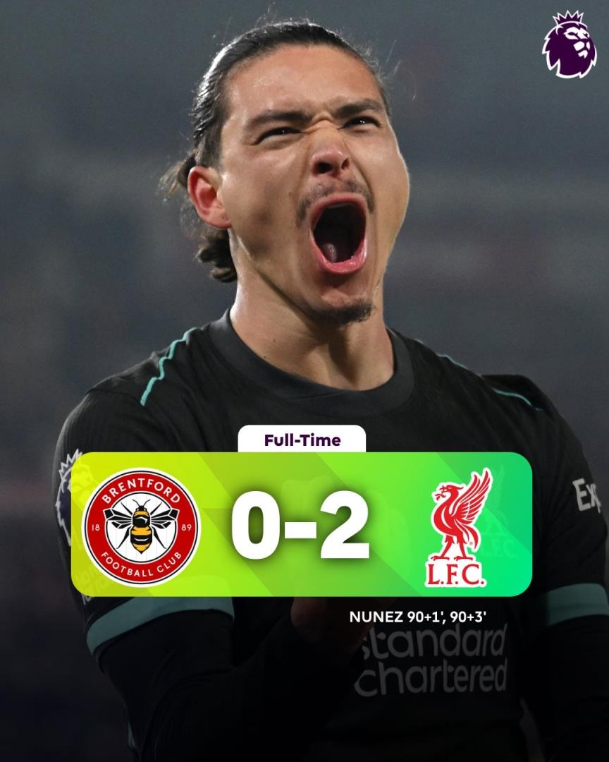 01月19日讯 英超第22轮,利物浦2-0击败布伦特福德,伤停补时努涅斯双响救主。