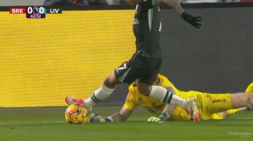 01月19日讯 利物浦vs布伦特福德比赛中,弗莱肯救球失误,迪亚斯在禁区内摔倒,裁判示意没问题。