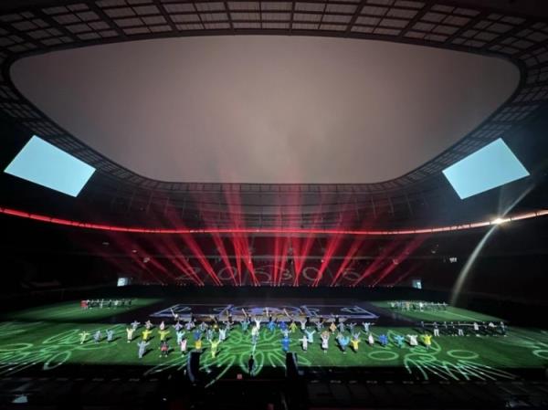 今晚,2024中超联赛开幕式在上汽浦东足球场举行。本次开幕式,以《以热爱 竞未来》的主题光影秀暖场,通过绚丽的光影秀,新赛季中超联赛的赛事口号“以热爱 竞未来”也被呈现给所有观众。