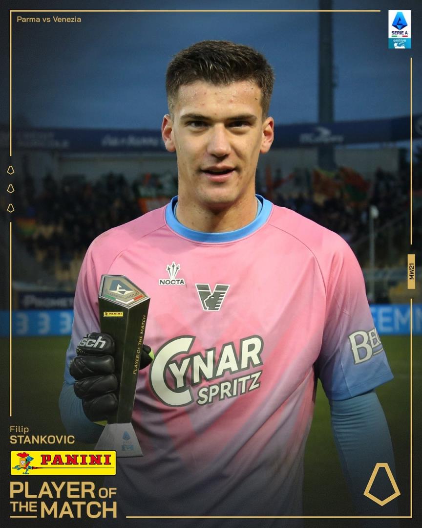 赛后,国米外租威尼斯22岁门将斯坦科维奇当选本场比赛的最佳球员。